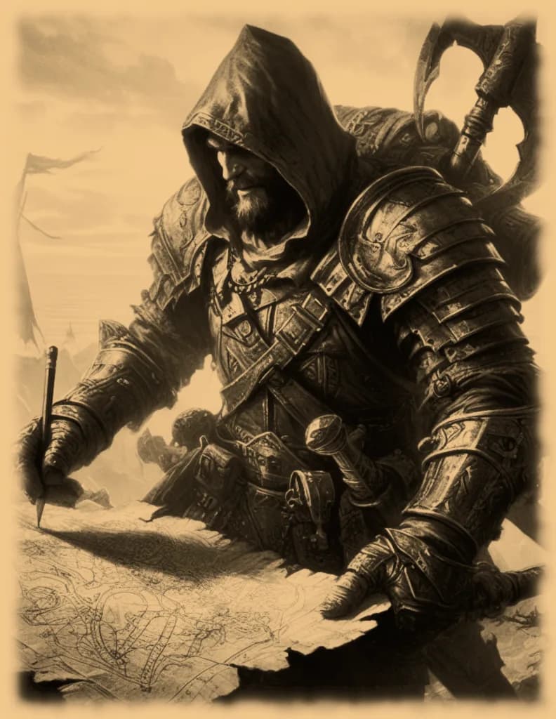 L’Esploratore è un individuo che, per la natura del suo vagabondare, ha imparato a destreggiarsi con molte abilità, senza eccellere in nessuna di queste. Non potrà mai difendersi come un Guerriero nel combattimento a corpo a corpo, né potrà competere con un Cacciatore nell’uso delle frecce. Non sarà mai veloce come un Assassino nell’uso del coltello, né potrà curare le ferite bene quanto un Chierico. Tuttavia egli è l’unico in grado di fare tutte queste cose assieme, ed è questa versatilità la sua vera specializzazione che lo rende un individuo da non sottovalutare mai.